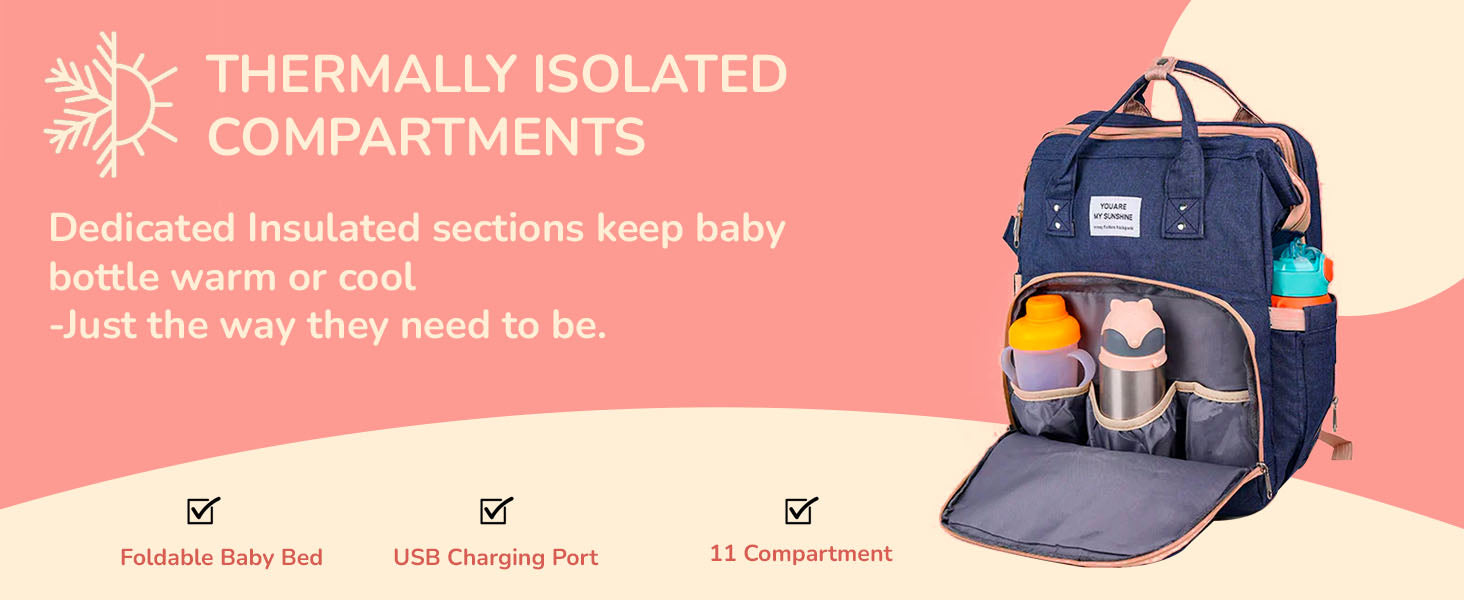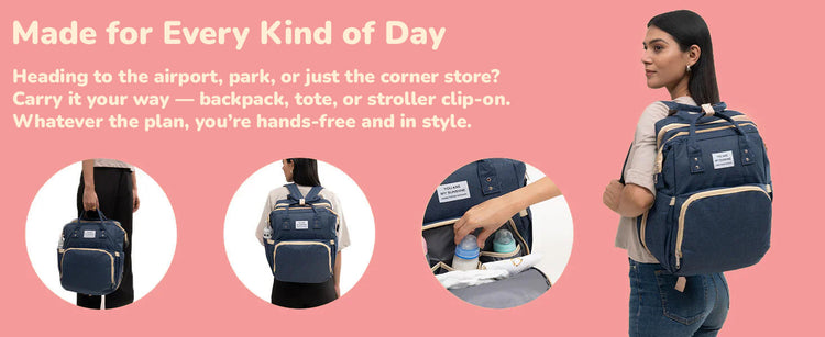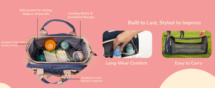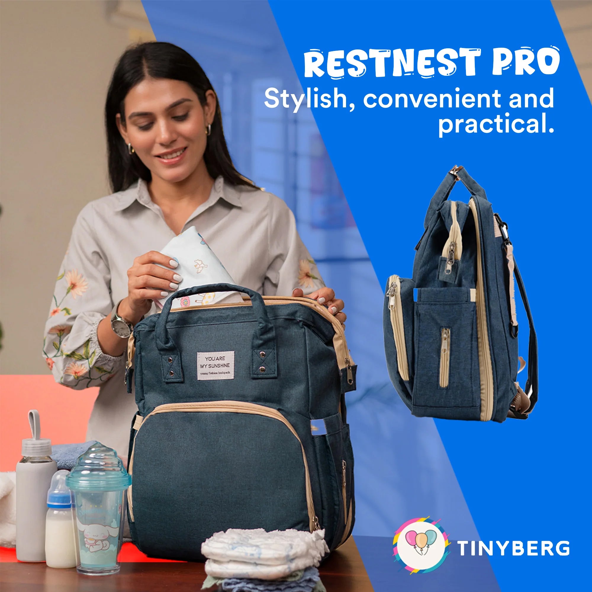 3 in 1 Water Resistant Diaper Bag | Maternity Backpack With Baby Bed And Changing Station | Large Capacity 11 Compartments With Insulated Bottle Holders And USB Charging | Rest Nest