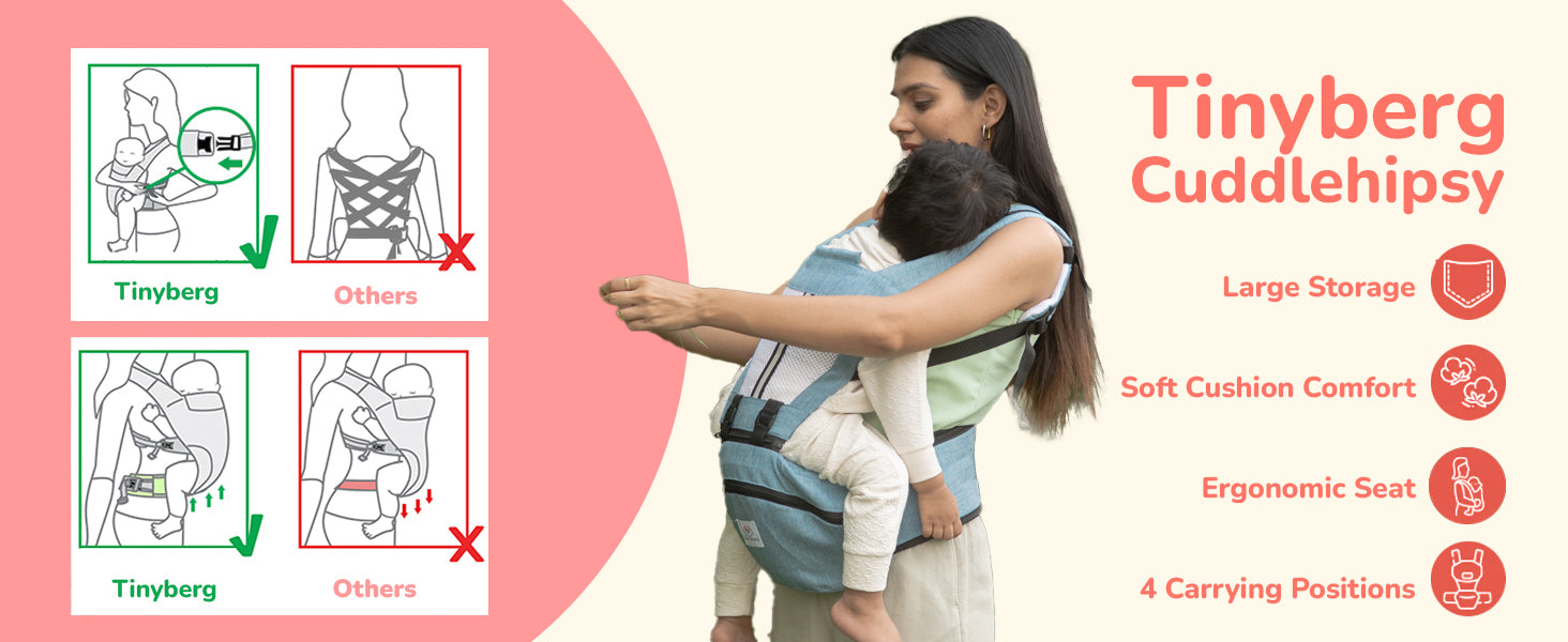 Baby Carrier | 3-36 Months | Up to 15 Kg | 4 Carry Positions | Hip Seat | Large Storage| Adjustable Straps | Newborn - Toddler | Cuddlehipsy