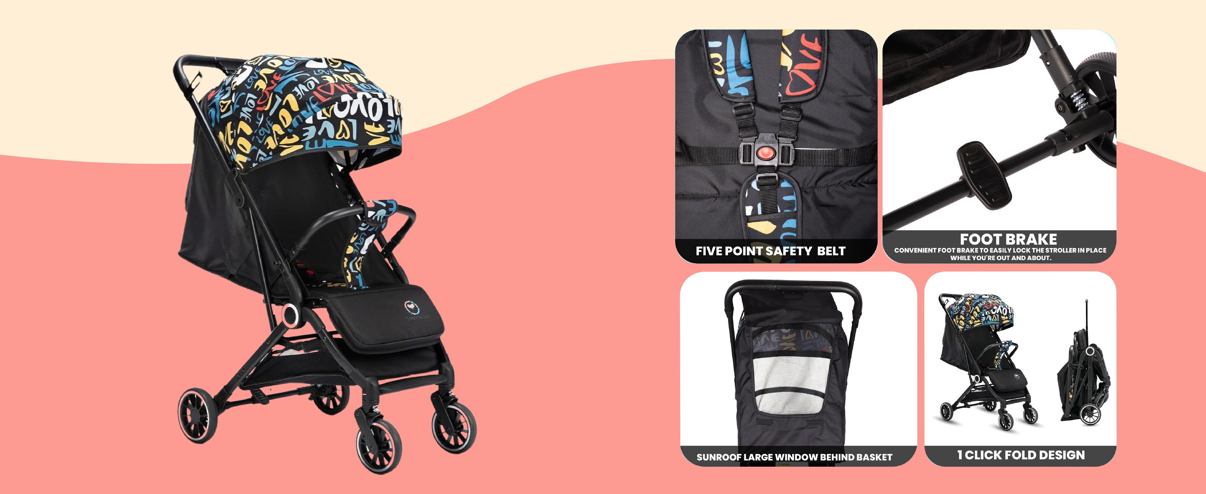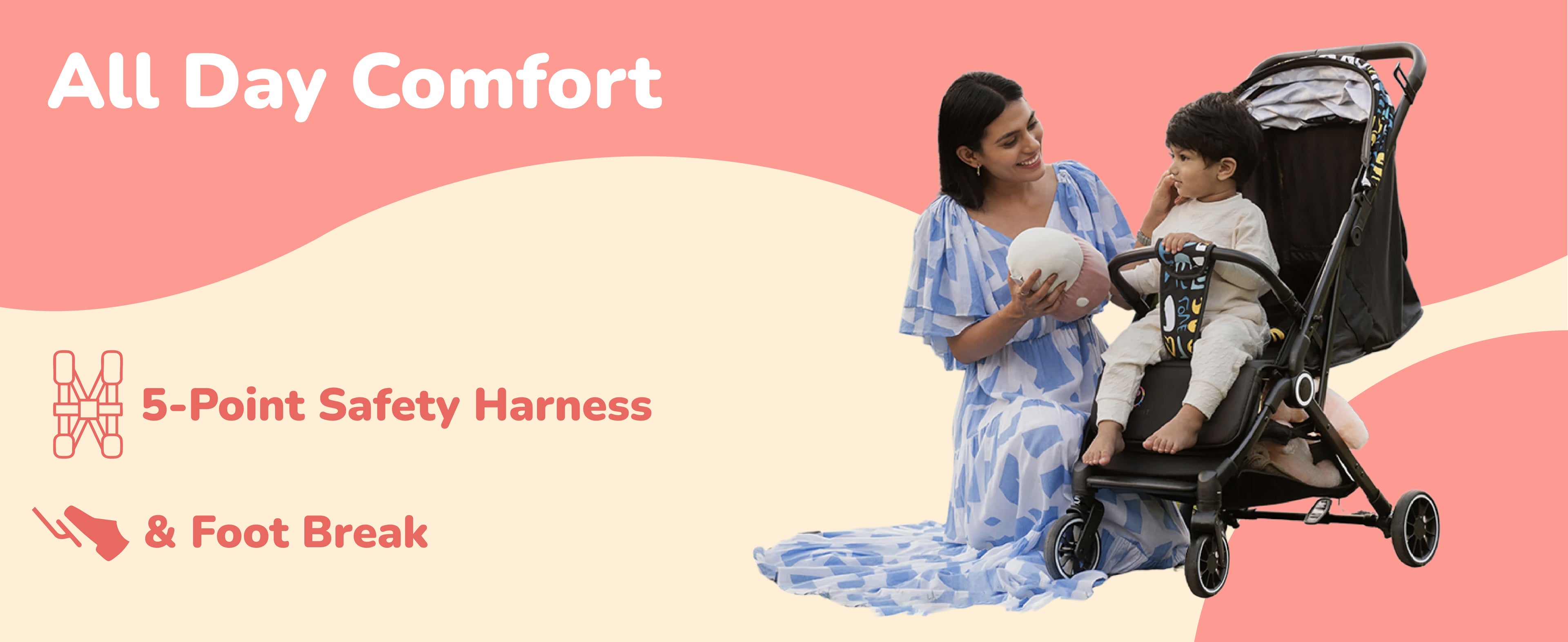 Baby Stroller | 0-5 Yr | Up to 25 Kg | Lightweight | One Hand Fold | Cabin Stroller | 5 Point Safety Belt | Multiple Recline | FeatherLite