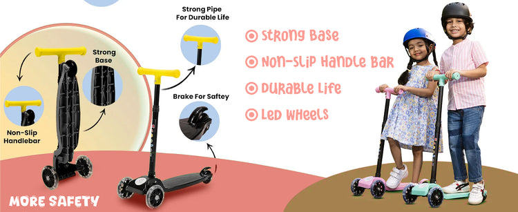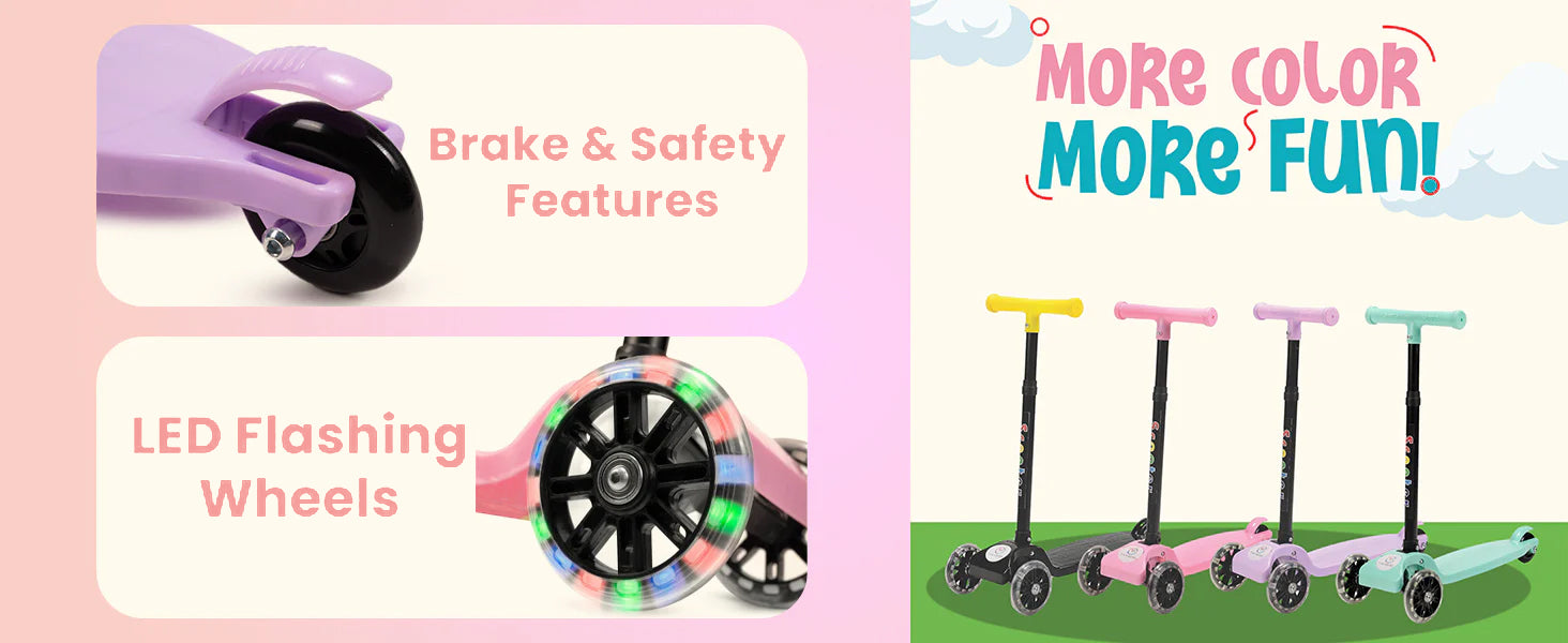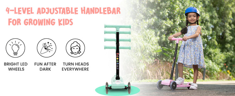 Kids Scooter | upto 50kg | LED Wheels | Adjustable Height | Foldable Lightweight Design | Safe Ride | Foot Brake | Vroom Vroom